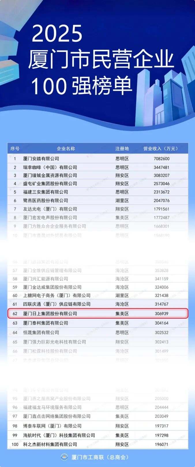 2025廈門(mén)市民營(yíng)企業(yè)100強